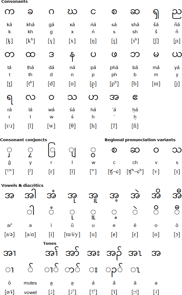 The consonants and most of the vowels are adopted from the Burmese and Mon alphabet. Since Karen has more tones than Burmese, additional tonal markers were added.